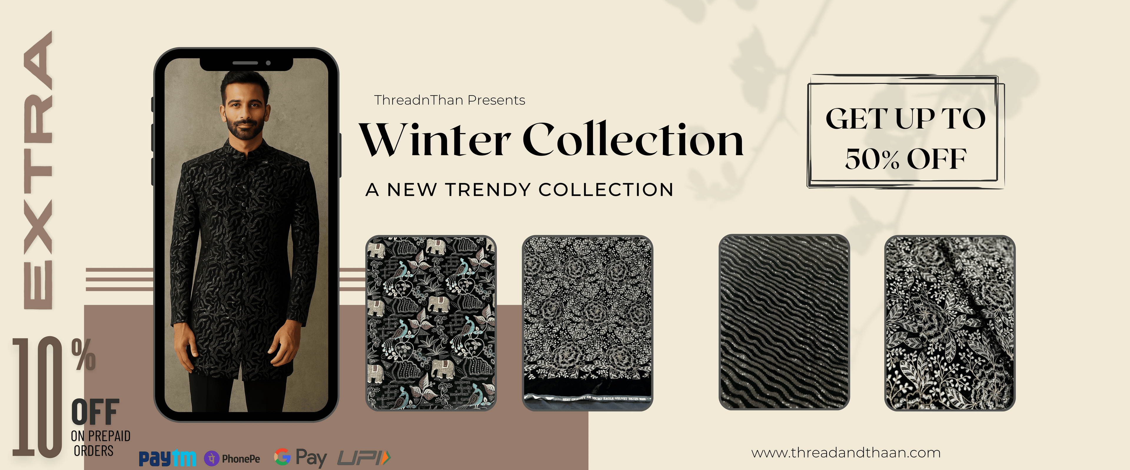 Premium Black Velvet Floral Work Fabric | Width 44”, Work 38” | Ideal for Sherwani, Jackets, Suits, Blazers & Indo-Western